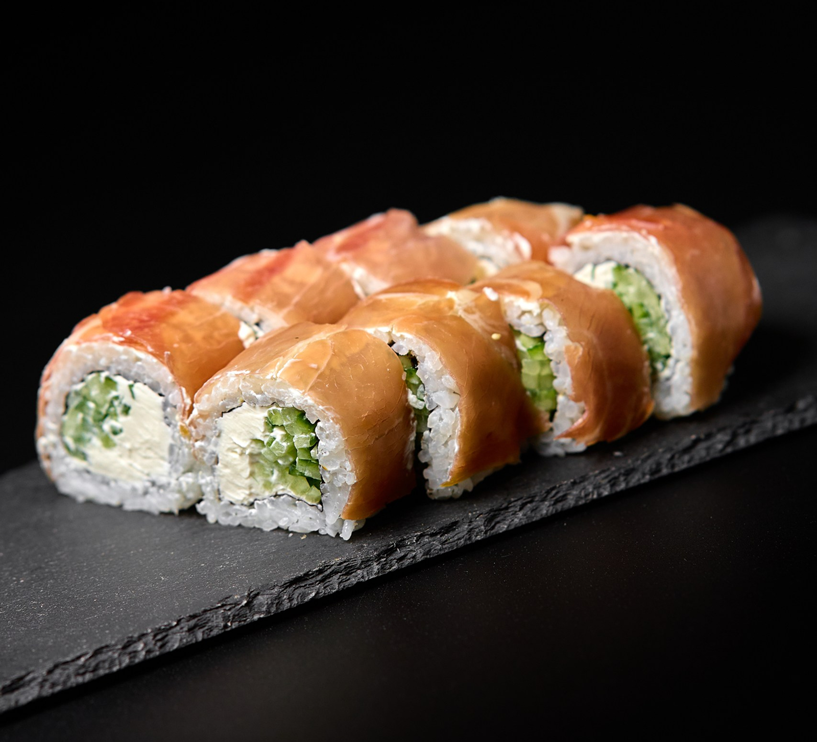 Wyjątkowe połączenie kuchni japońskiej i włoskiej. Delikatny ryż i nori otulają świeży ogórek oraz kremowy ser, a aromatyczne prosciutto nadaje całości wyrazisty, lekko słony charakter. Idealny wybór dla tych, którzy lubią oryginalne, nieoczywiste smaki.