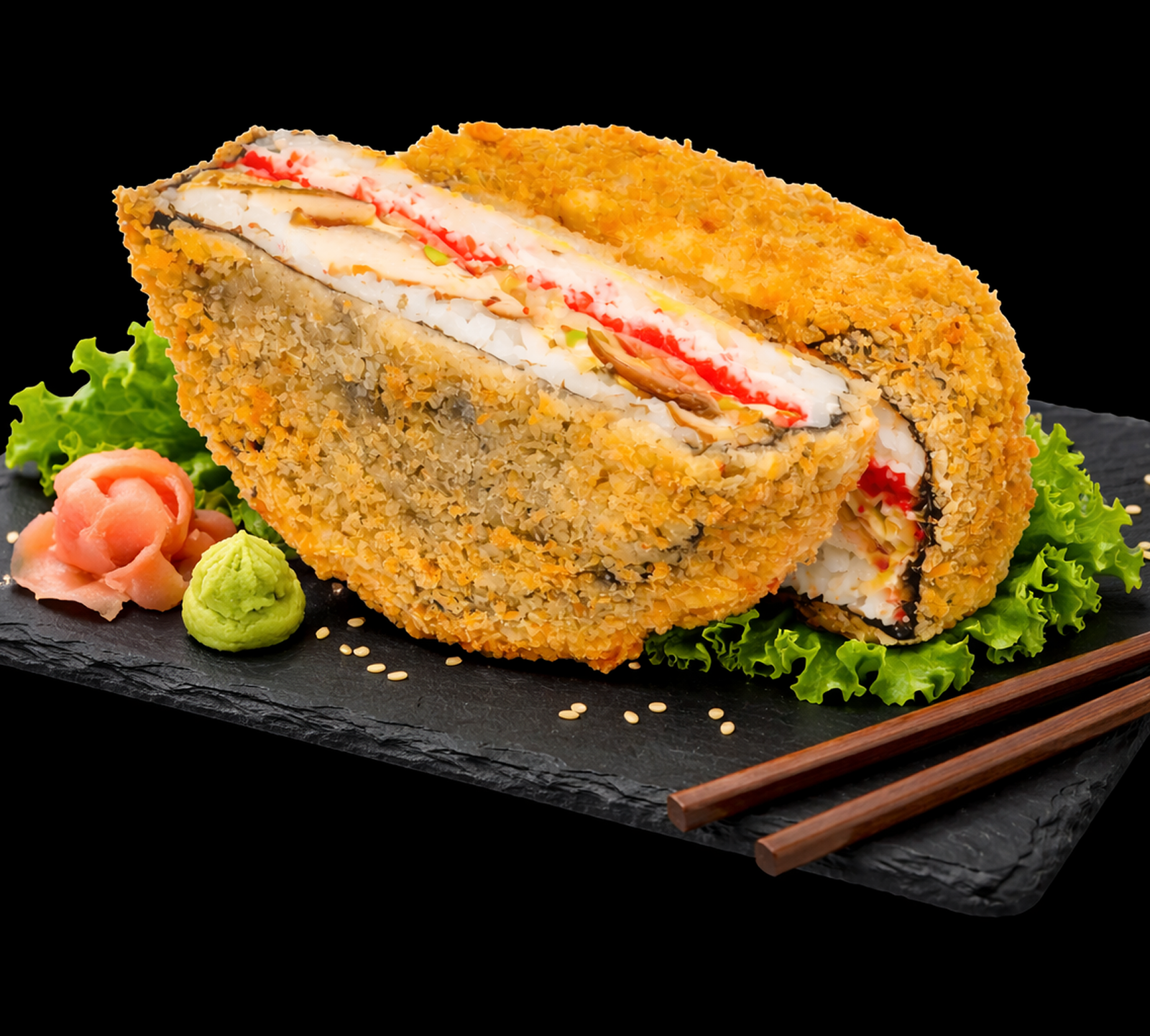 Soczysty kurczak, aksamitne awokado i chrupiące tobiko w połączeniu z puszystym ryżem i nori tworzą wyjątkowy sushi burger. Delikatny ser tostowy dodaje kremowej konsystencji, a całość zachwyca smakiem i wyglądem.