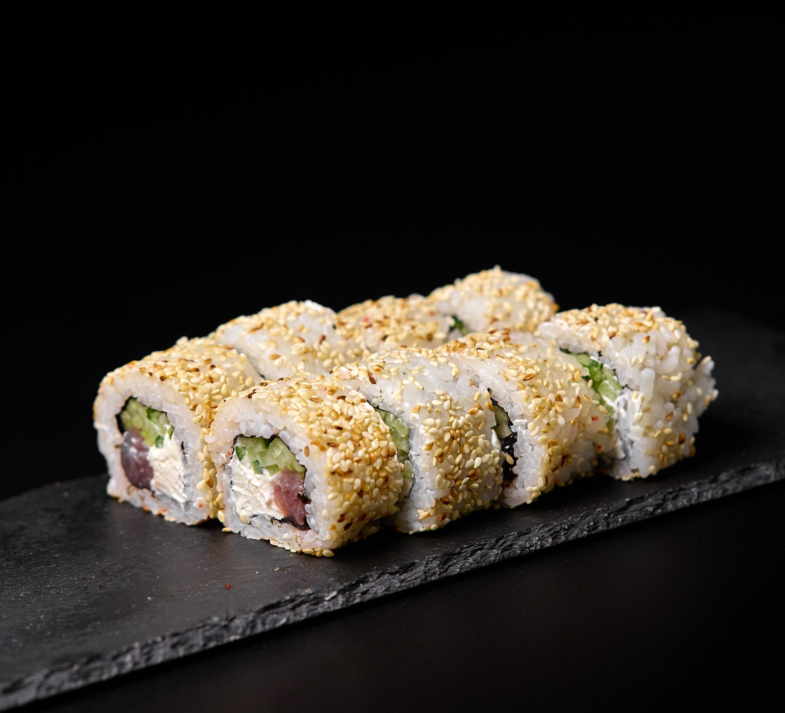 Delikatny tuńczyk, świeży ogórek i kremowy ser w połączeniu z puszystym ryżem i nori tworzą klasyczną, harmonijną kompozycję. Sezam dodaje subtelnej, orzechowej nuty i przyjemnego aromatu.