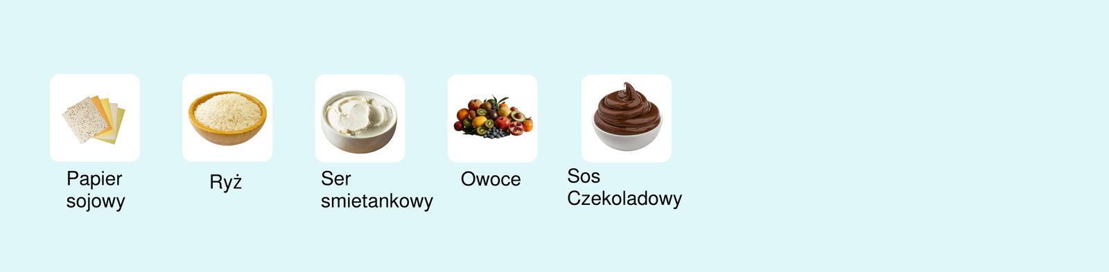 Delikatny papier sojowy otula puszysty ryż, kremowy serek i soczyste owoce. Całość dopełnia aksamitna czekolada, tworząc słodką, deserową kompozycję idealną na finał posiłku.